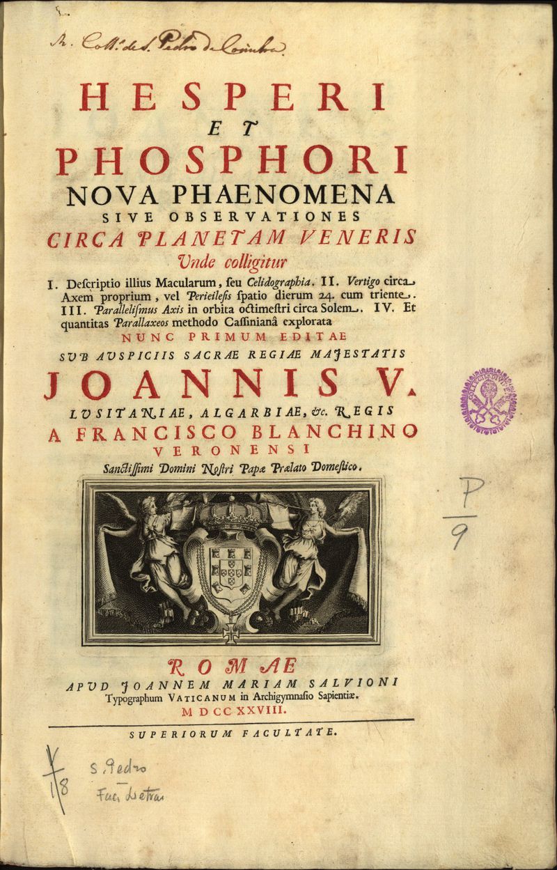 Contém: Epistola admodum Reverendis Patris Melchioris a Brigâ ... ad illustrissimum ac reverendissimum praesulen Franciscum Blanchinarum datata de Florença, III. Nonas Septembris, 1726. - p. 86-92.