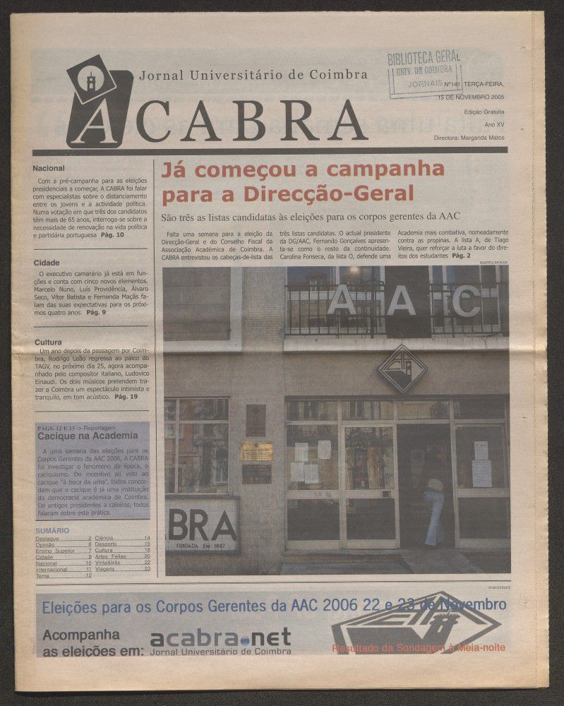 A cabra : jornal universitário de Coimbra - A. 15, n.º141 (nov. 2005)