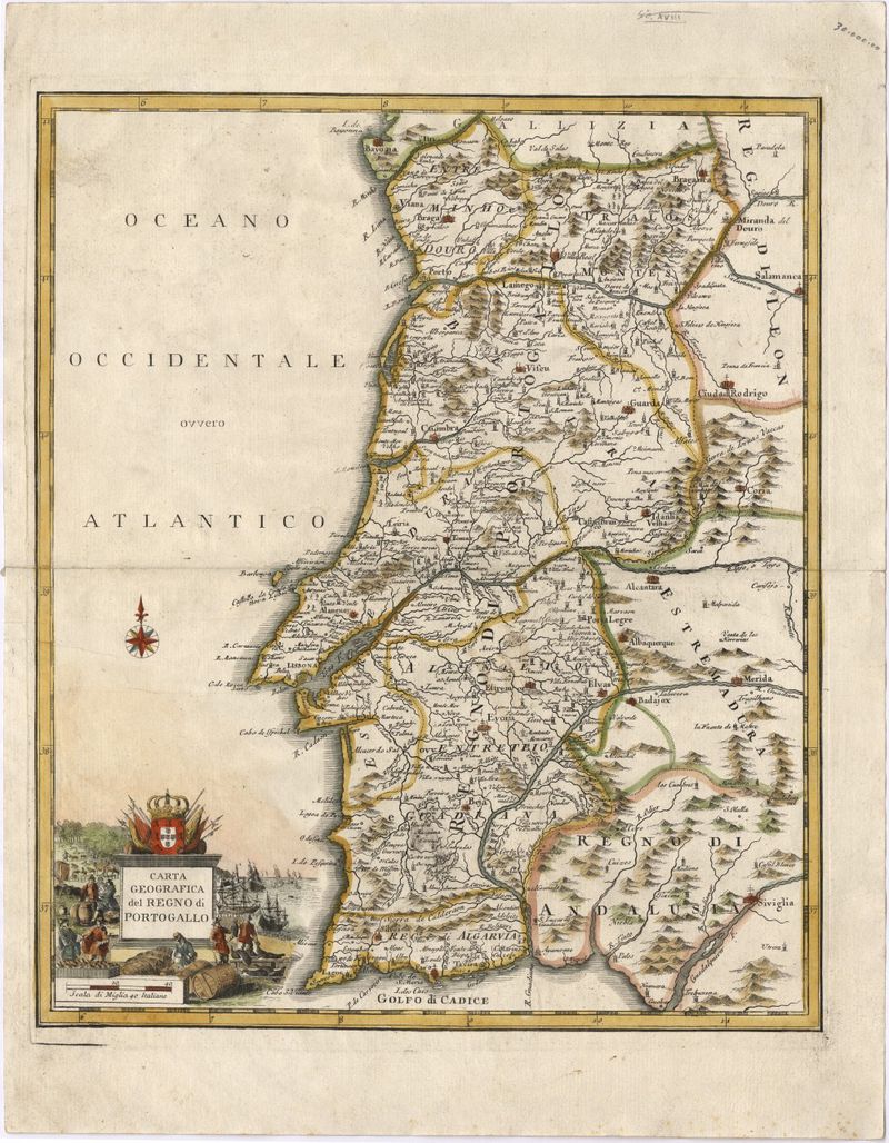Cartela com o título encimada pela coroa portuguesa e rodeada por figuras humanas e navios.