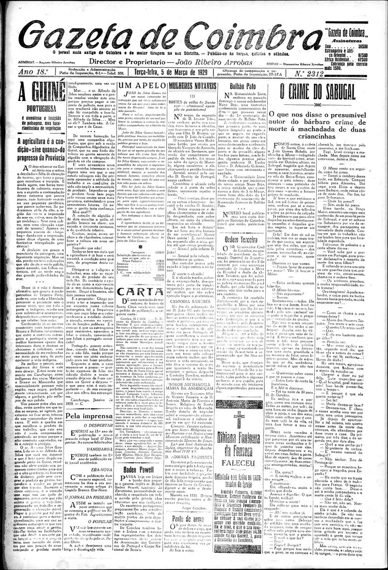 Gazeta de Coimbra 1929, Março 05, terça-feira - Nº2312
