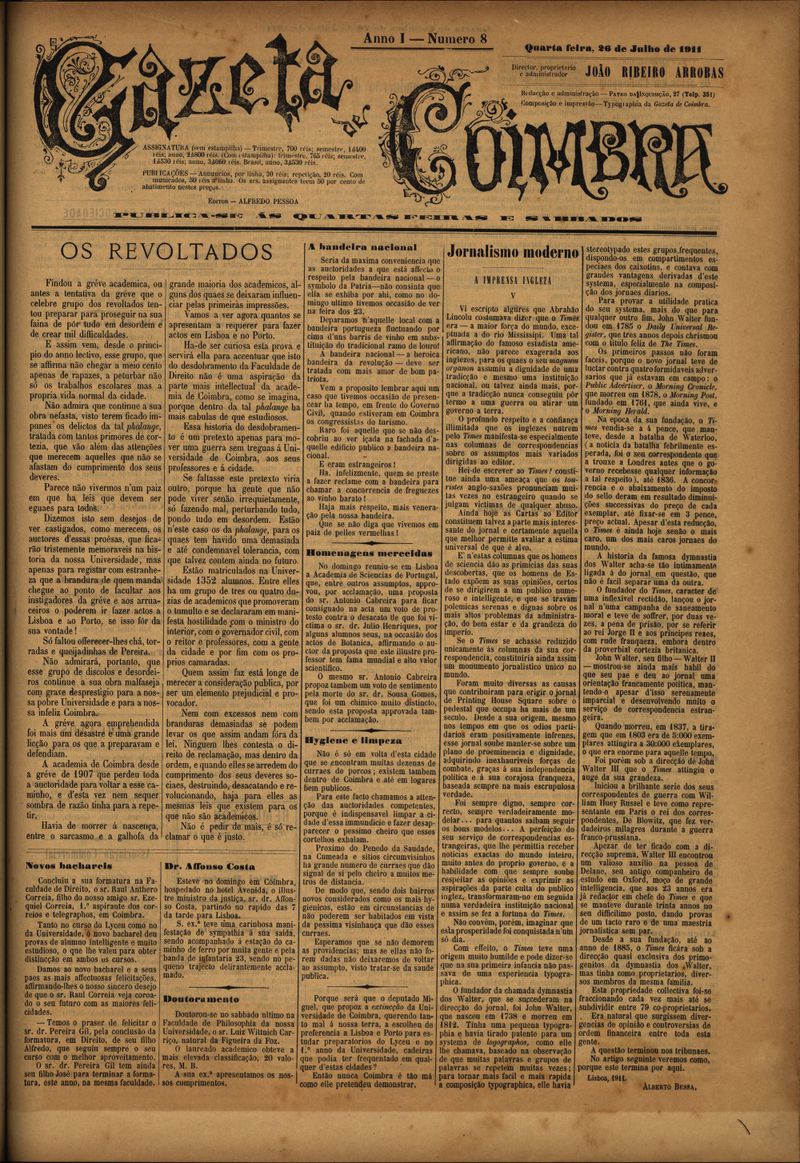 Gazeta de Coimbra 1911, Julho 26, quarta-feira - Nº8