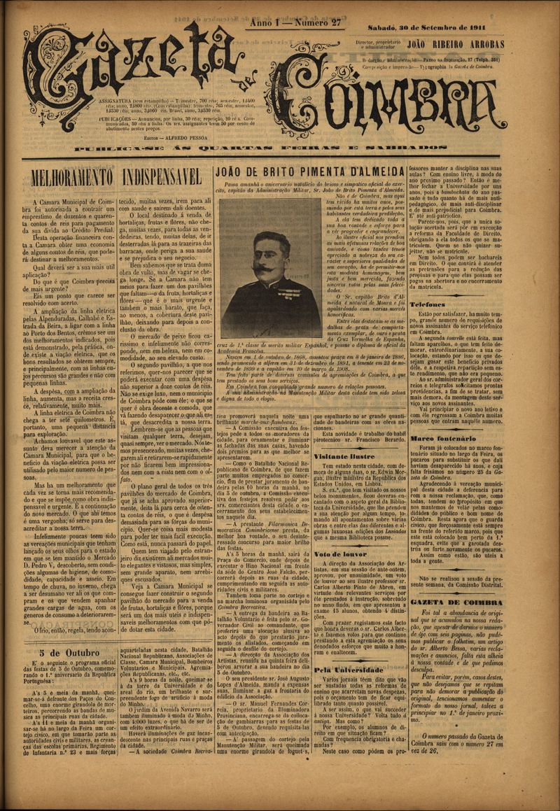 Gazeta de Coimbra 1911, Setembro 30, sábado - Nº27