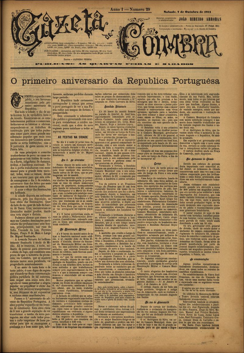 Gazeta de Coimbra 1911, Outubro 07, sábado - Nº29