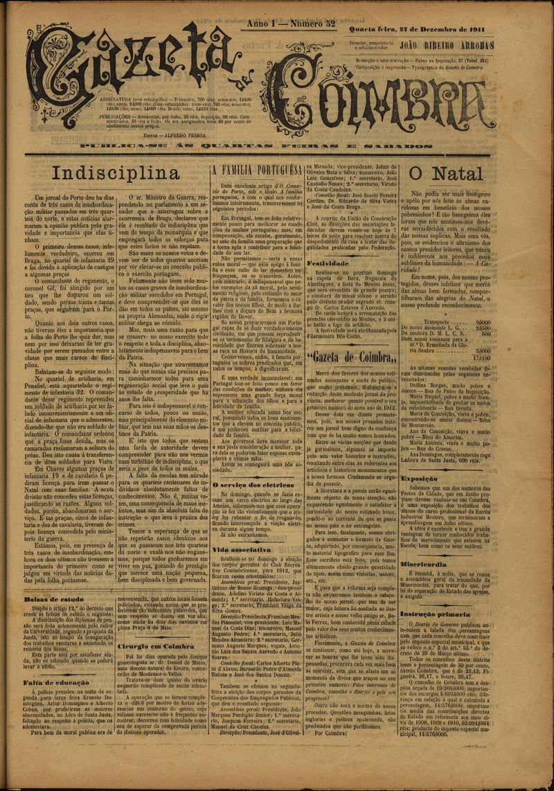 Gazeta de Coimbra 1911, Dezembro 27, quarta-feira - Nº52