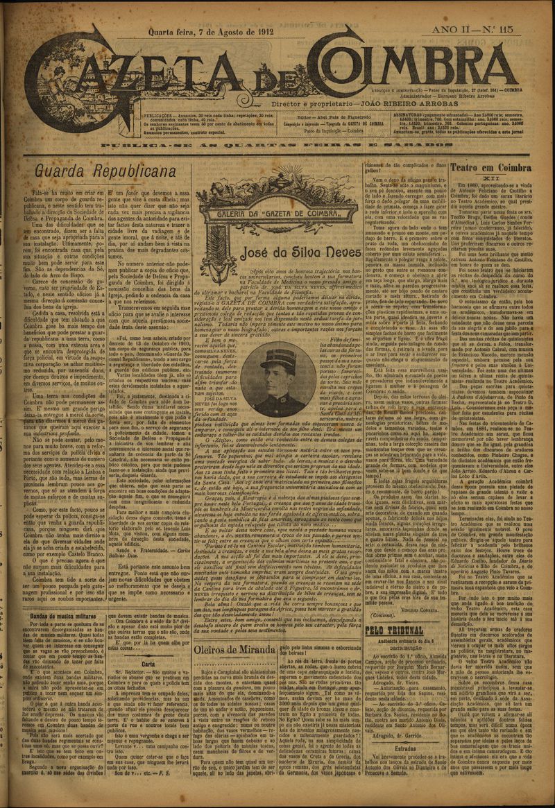 Gazeta de Coimbra 1912, Agosto 07, quarta-feira - Nº115