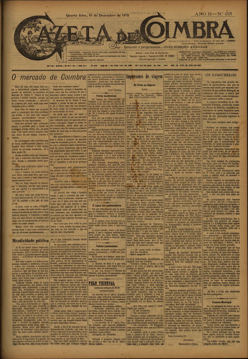 Gazeta de Coimbra 1912, Dezembro 18, quarta-feira - Nº153