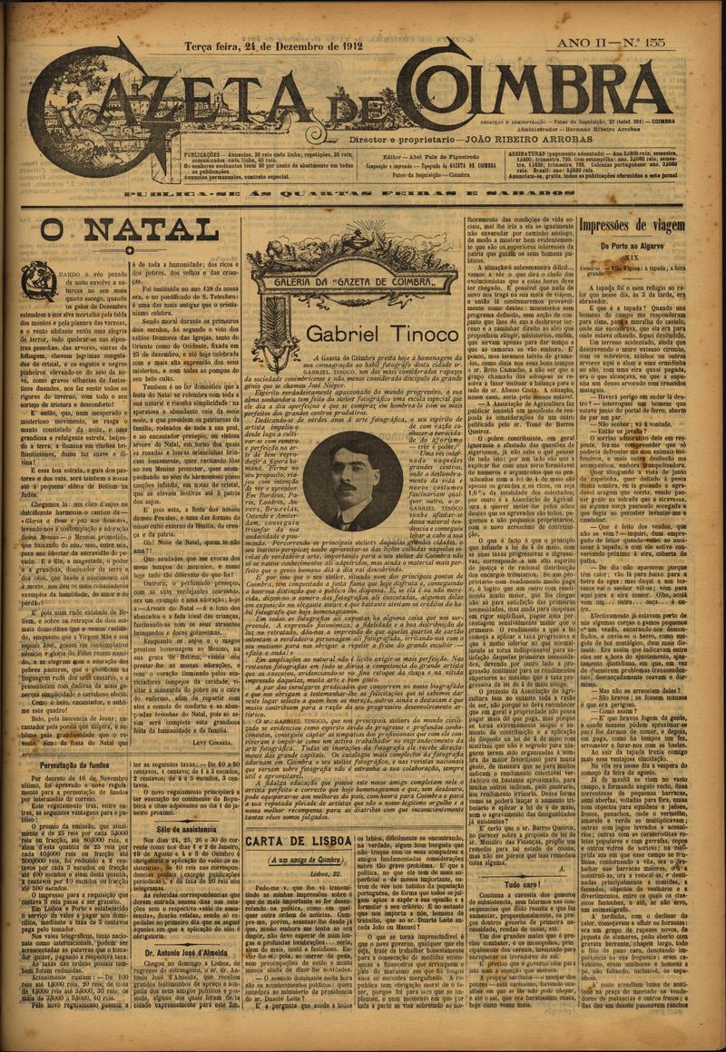 Gazeta de Coimbra 1912, Dezembro 24, terça-feira - Nº155