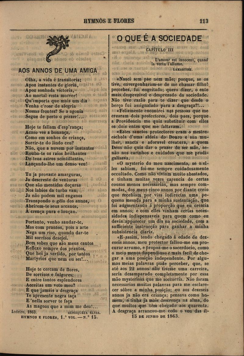 Hymnos e flores : jornal litterário
