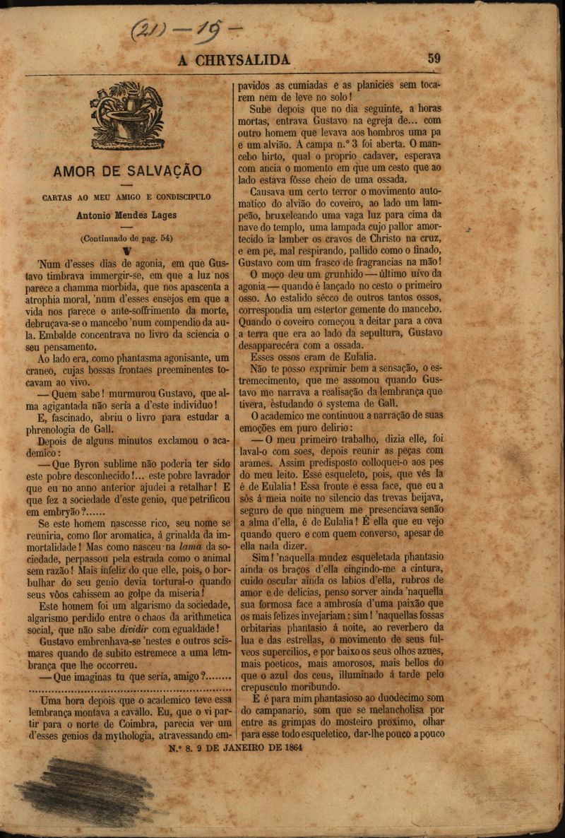 A chrysalida : jornal de literatura Nº8 9 Janeiro 1864