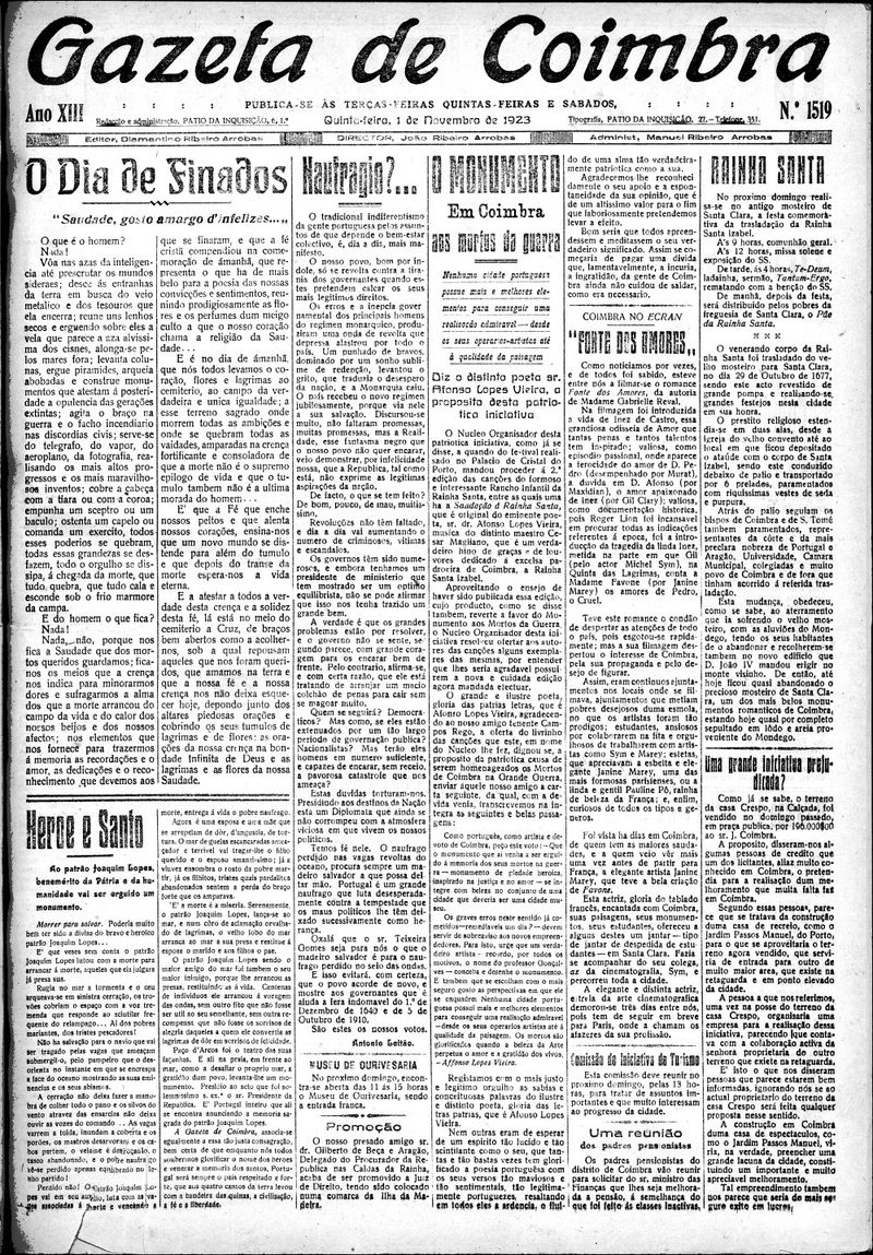 Gazeta de Coimbra 1923, Novembro 01, quinta-feira - Nº1519