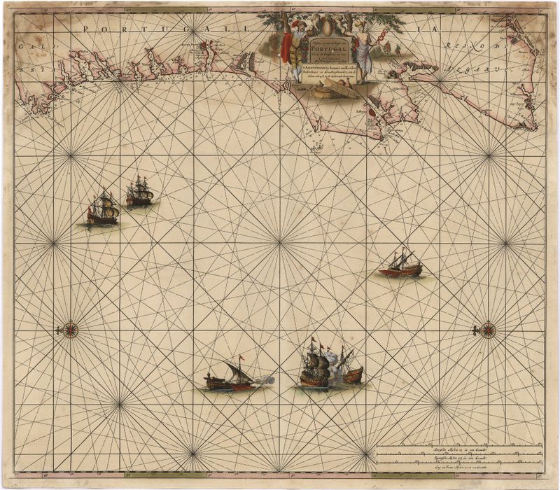 Pascaart van de Kust van Portugal, van C. de Finisterre tot aen C. de S. Vincente, Met Priviligie voor 15 Iaar
