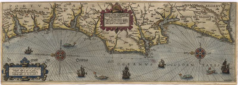 Beschriuinge van Portugal, ende de ghelegentheit vande lande lancx de ee costen mitsgaders de mondenvande riuieren, ende de sanden ende indiepten dieme machten ende schurven moet
