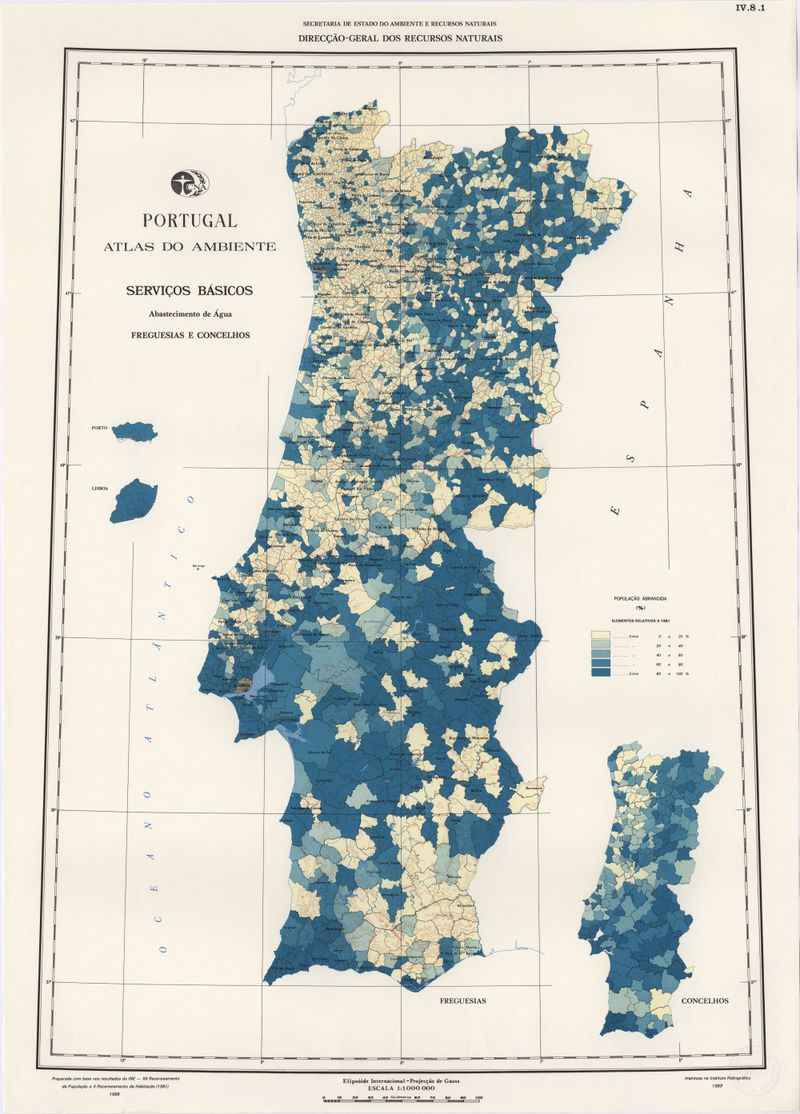 Abastecimento de água -- Portugal -- mapa -- 1989