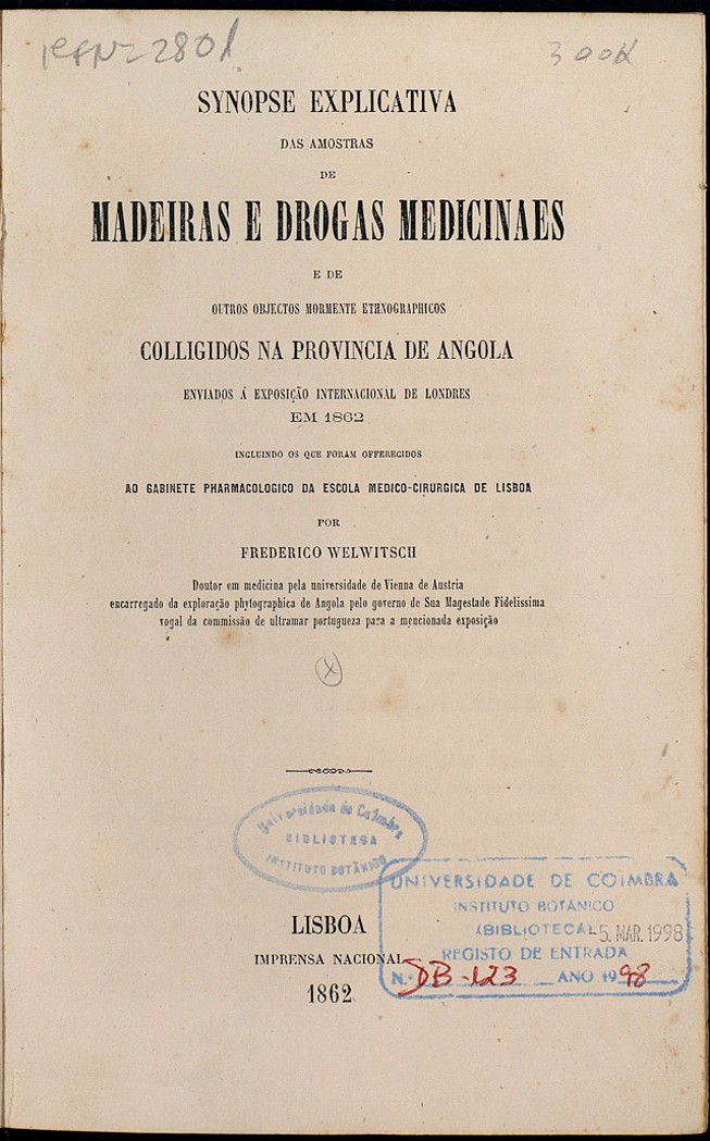 Synopse explicativa das amostras de madeiras e drogas medicinaes e de outros objectos mormente ethnographicos colligidos na provincia de Angola enviados à Exposição Internacional de Londres ...