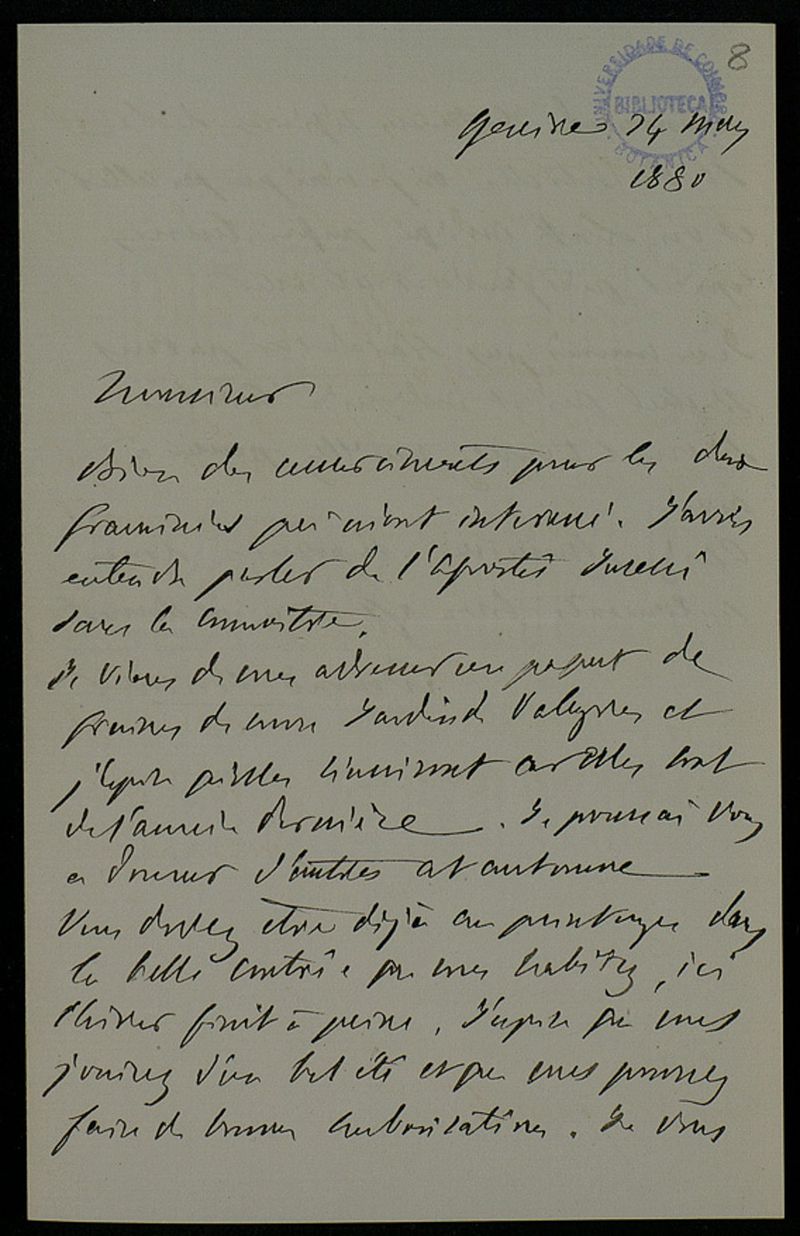 [Lettre], 1880 mai 24, Genève, [à] Monsieur [Júlio Henriques, Coimbra]