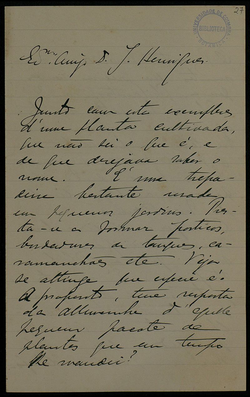 Henriques, Júlio Augusto, 1838-1928 (destinatário)