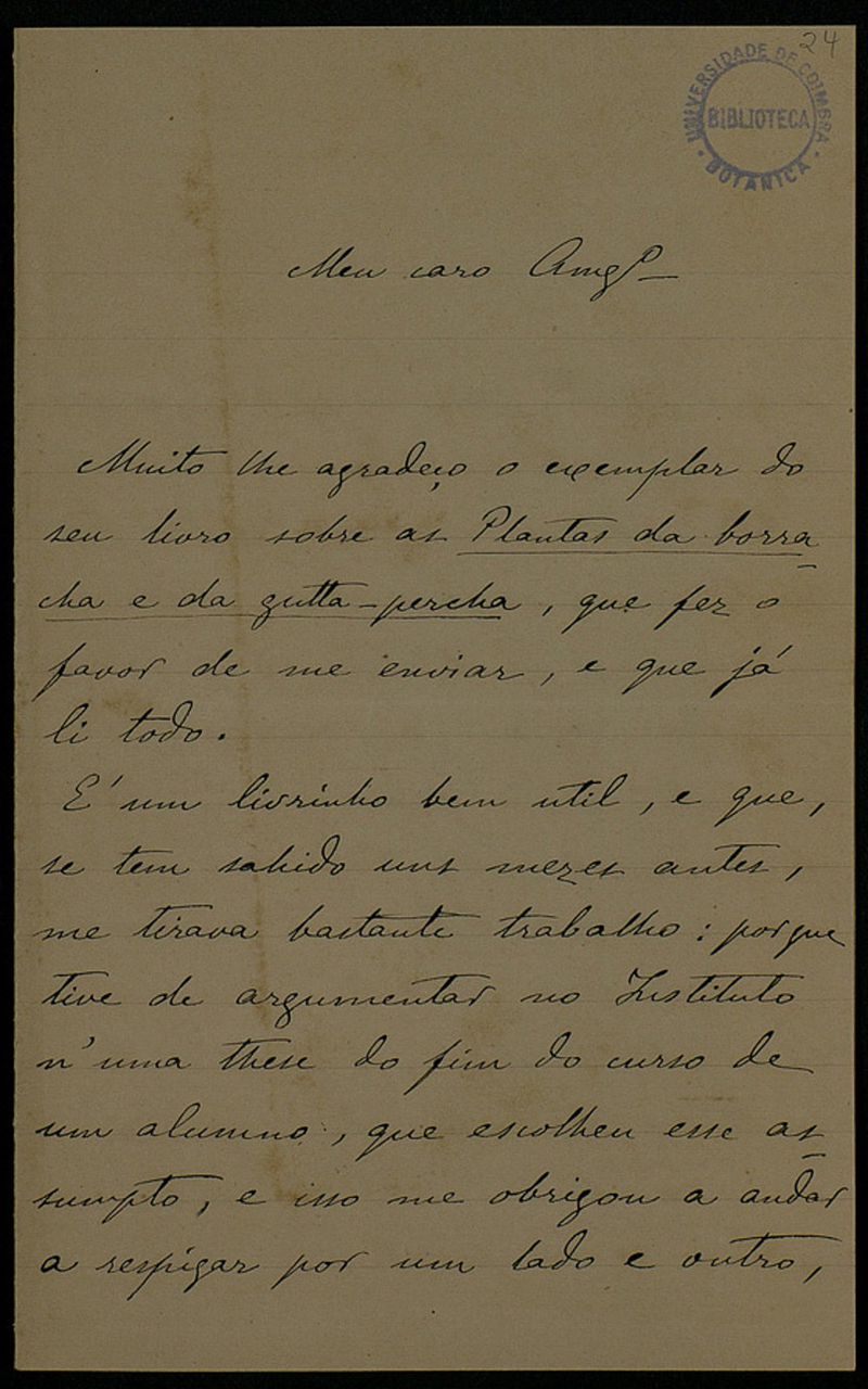 [Carta], 1901 Jun. 24, Lisboa, [a Júlio Henriques, Coimbra]