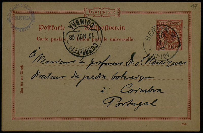 Postkarte, 1898 nov. 12, Berlin, [à Júlio Henriques], Coimbra