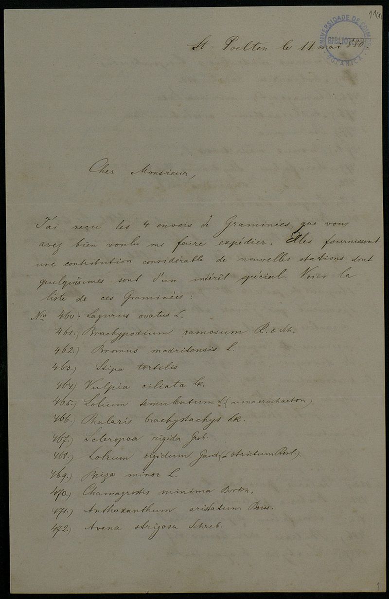 [Lettre], 1880 mai 11, St. Poelten, [à] Monsieur [Júlio Henriques], Coimbra