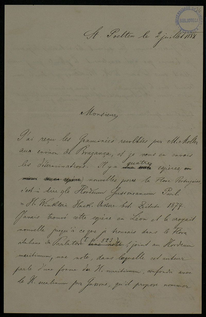 [Lettre], 1883 juin 2, St. Poelten, [à] Monsieur [Júlio Henriques], Coimbra