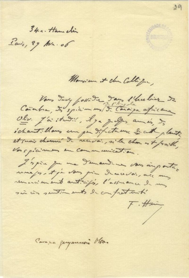 [Lettre], 1906 avr. 29, Paris, [à Júlio Henriques, Coimbra]