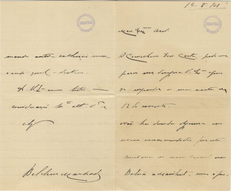 [Carta], 1908 Ago. 14, [Lisboa, a Júlio Henriques, Coimbra]