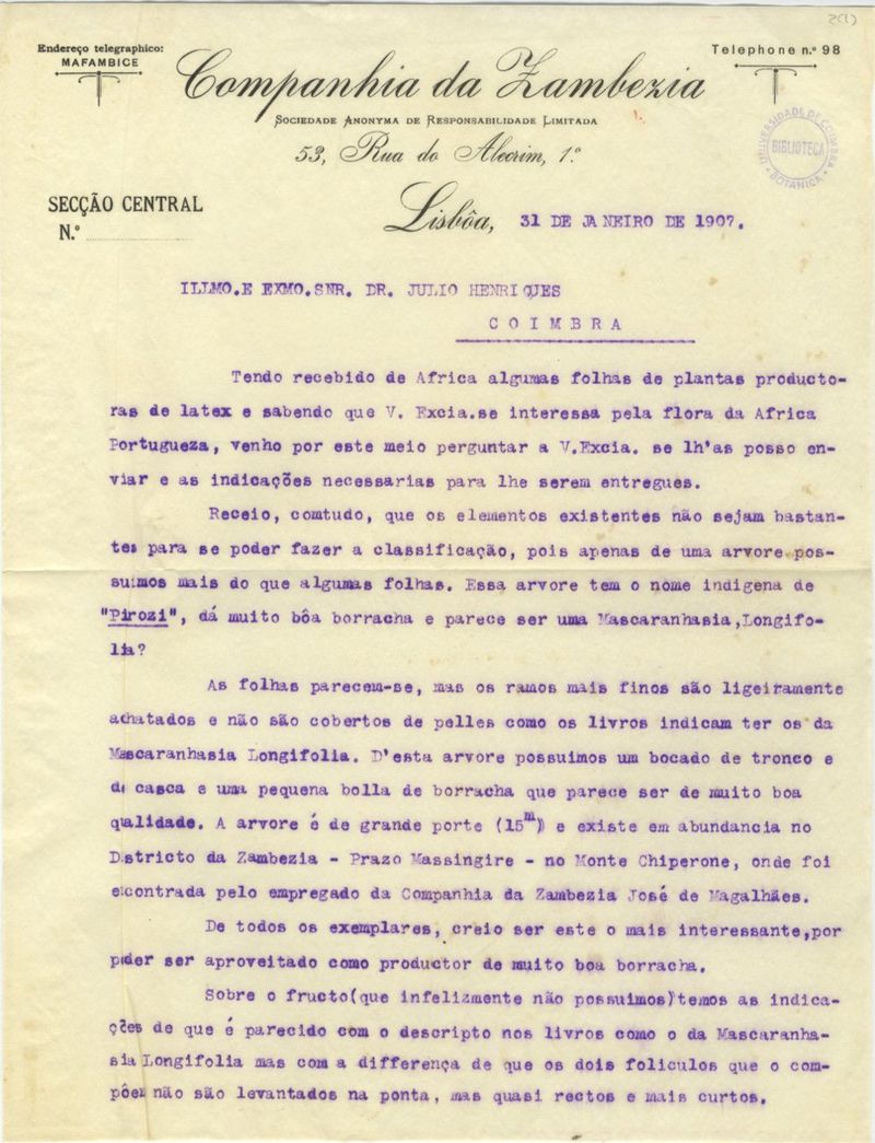 [Carta], 1907 Jan. 31, Lisbôa, [a] Julio Henriques, [Coimbra]