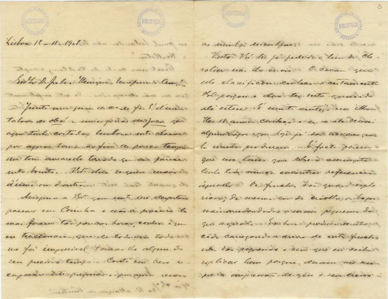 [Carta], 1908 Nov. 18, Lisboa, [a] Júlio Henriques, [Coimbra]