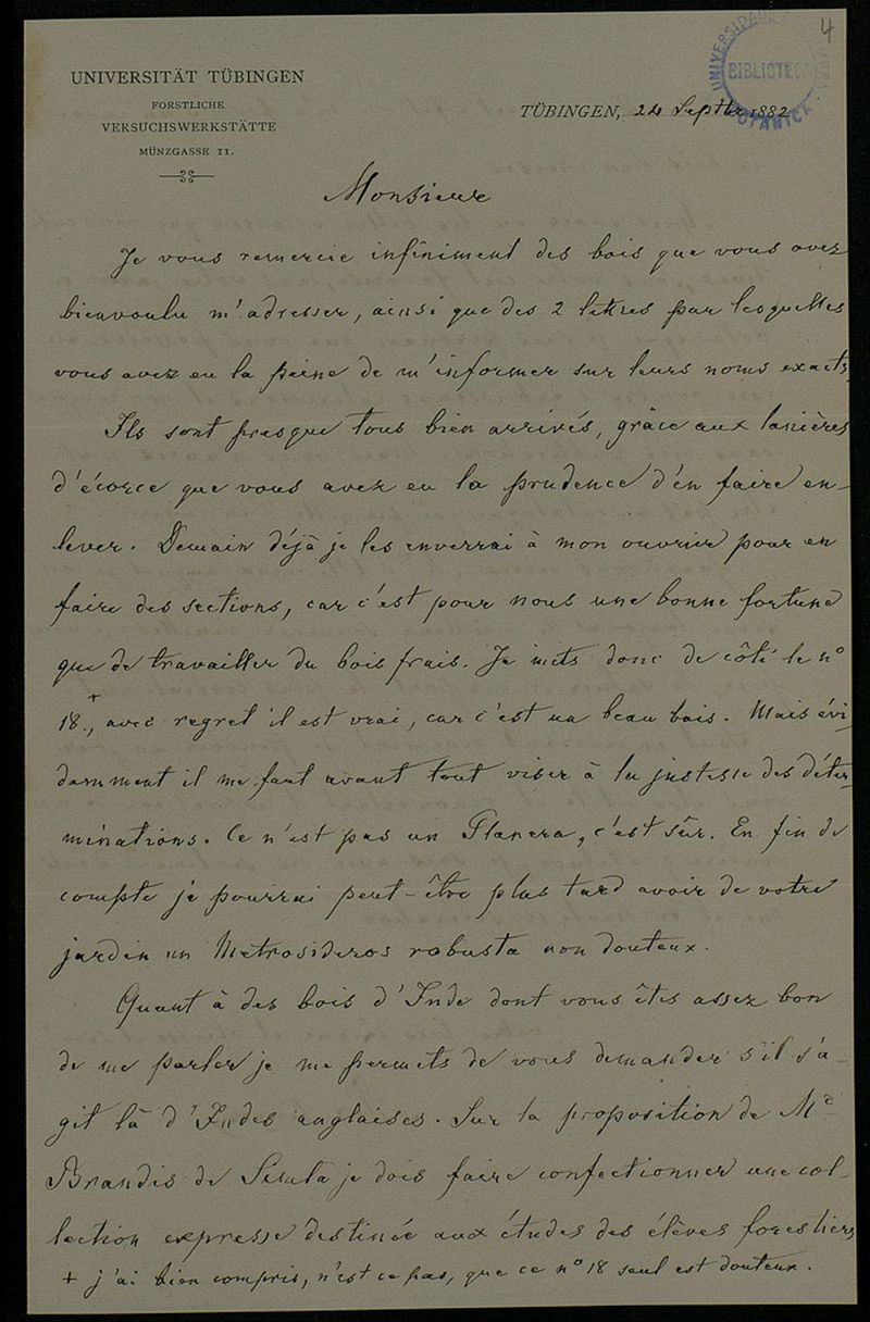[Lettre], 1882 sept. 24, Tubingen, [à] Monsieur [Júlio Henriques], Coimbra