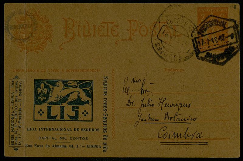 Bilhete Postal, 1919 Jan. 17, Porto, a Dr. Júlio Henriques, Coimbra