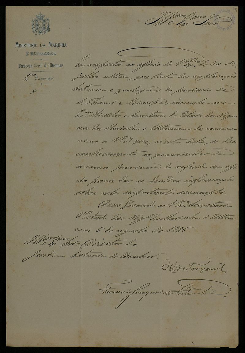 Papel timbrado do Ministerio da Marinha e Ultramar - Direcção Geral do Ultramar.