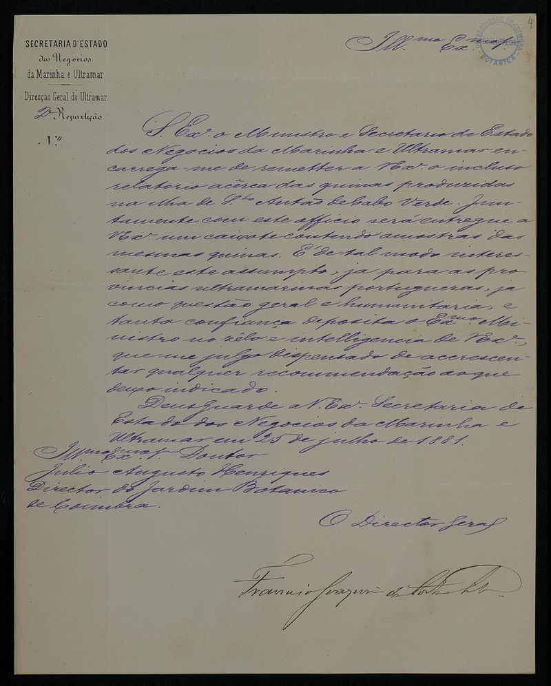 [Carta], 1881 Jul. 25, Lisboa, [a] Doutor Julio Augusto Henriques, Coimbra