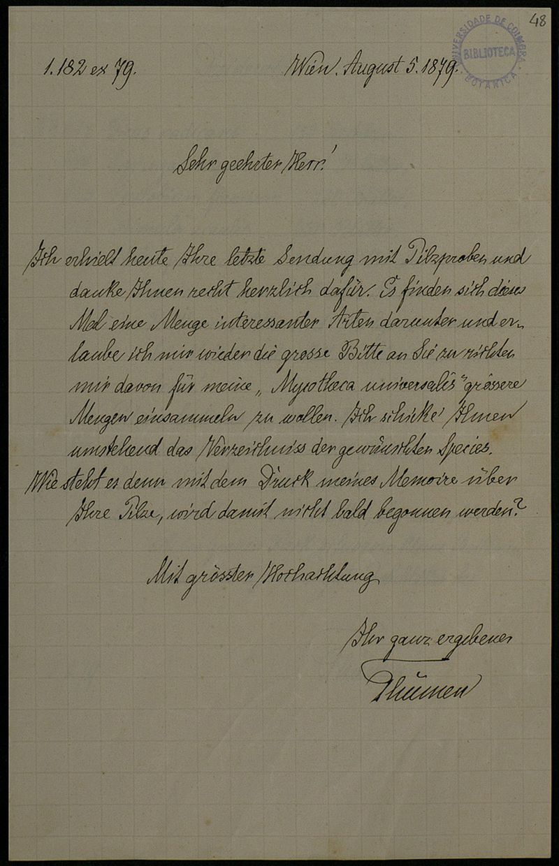 [Brief], 1879 Aug. 5, Wien, [an] Herr[n Adolfo F. Möller, Coimbra]
