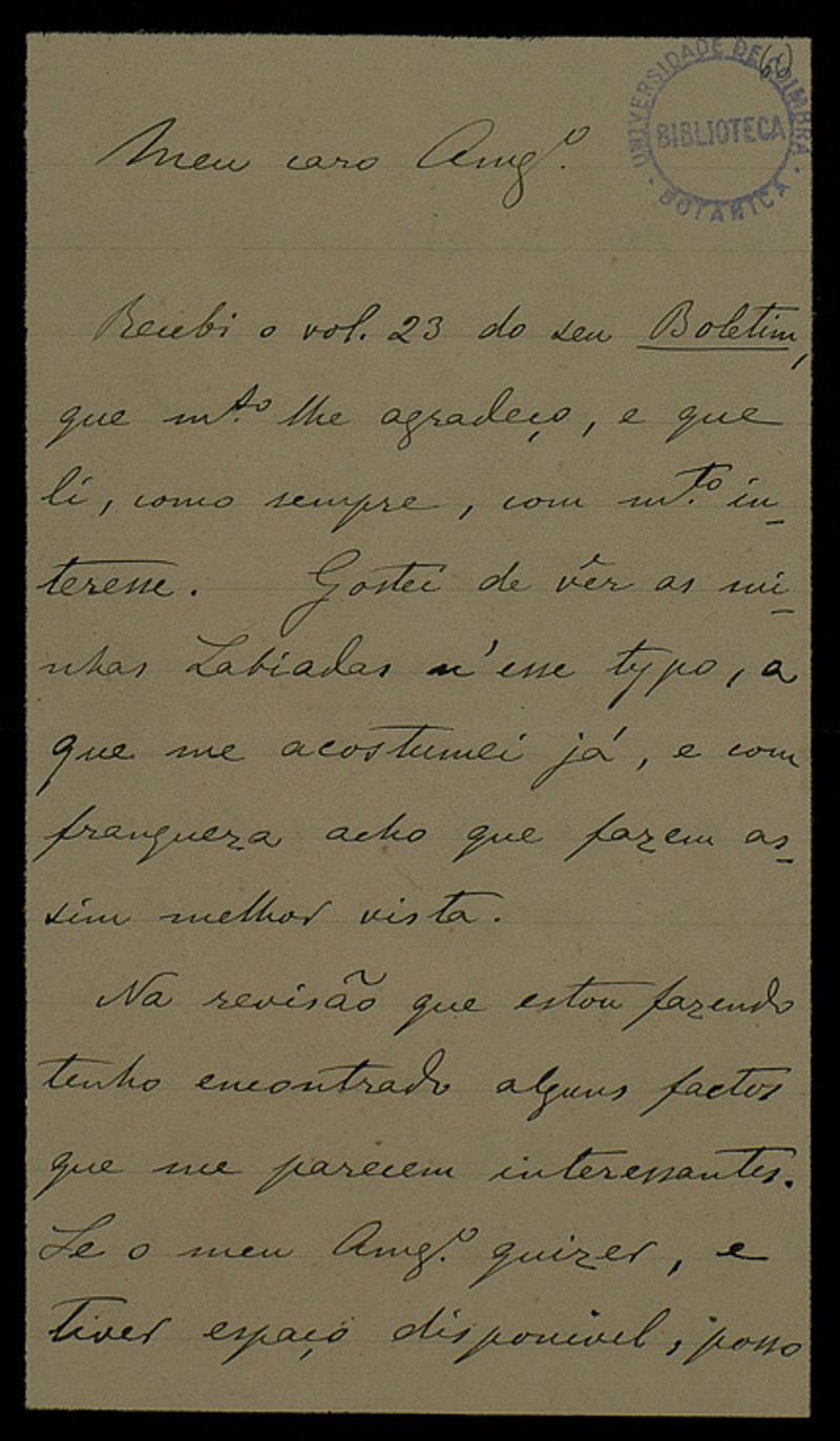 [Carta], 1908 Nov. 17, Lisboa, [a Júlio Henriques, Coimbra]