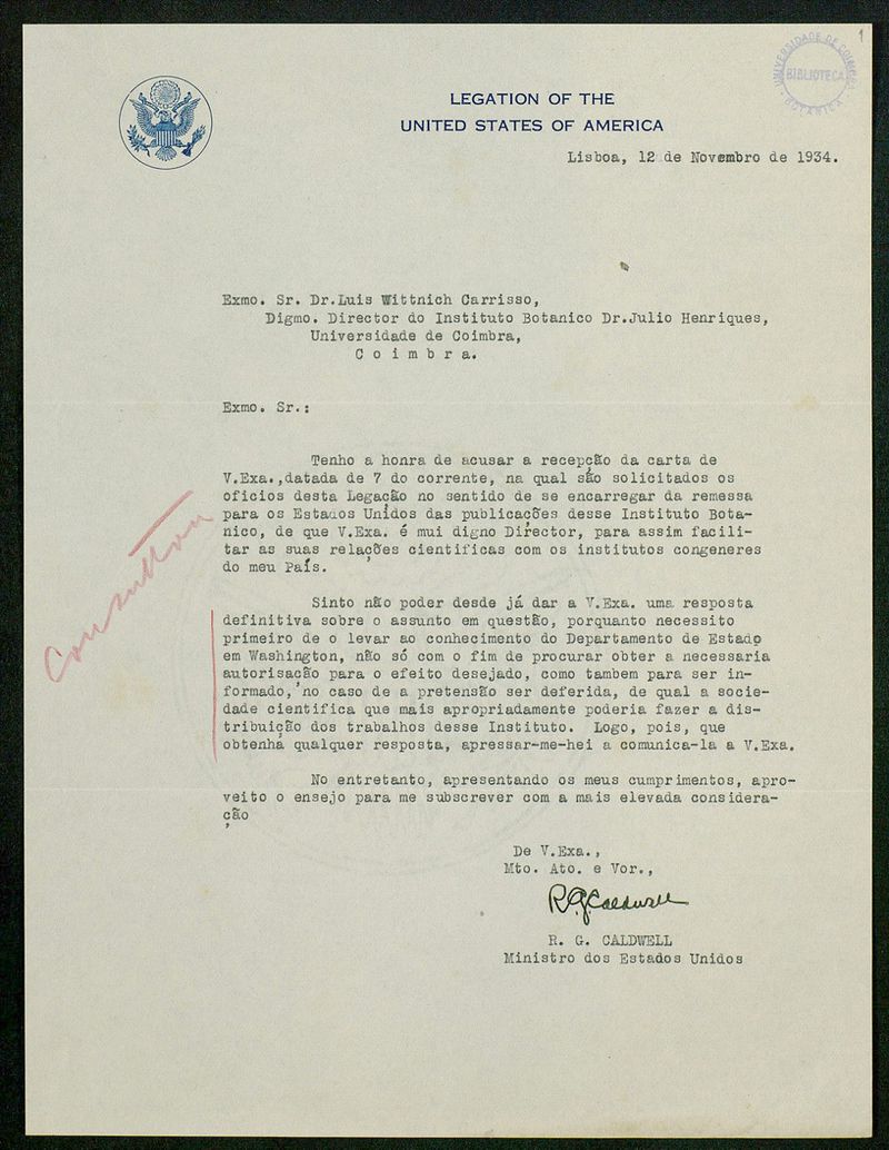 [Carta], 1934 Nov. 12, Lisboa, [a] Dr. Luis Wittnich Carrisso, Coimbra