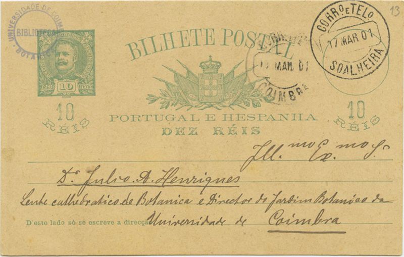 Bilhete Postal, 1901 Mar. 17, S. Fiel, a Dr. Júlio A. Henriques, Coimbra