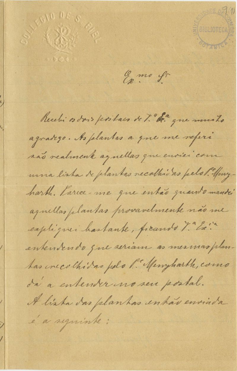 [Carta], 1901 Jan. 25, Collegio de S. Fiel, [a Júlio Henriques, Coimbra]