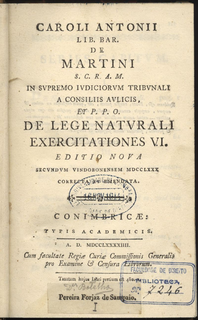 Caroli Antonii Lib. Bar. De Martini... De lege naturali exercitationes VI