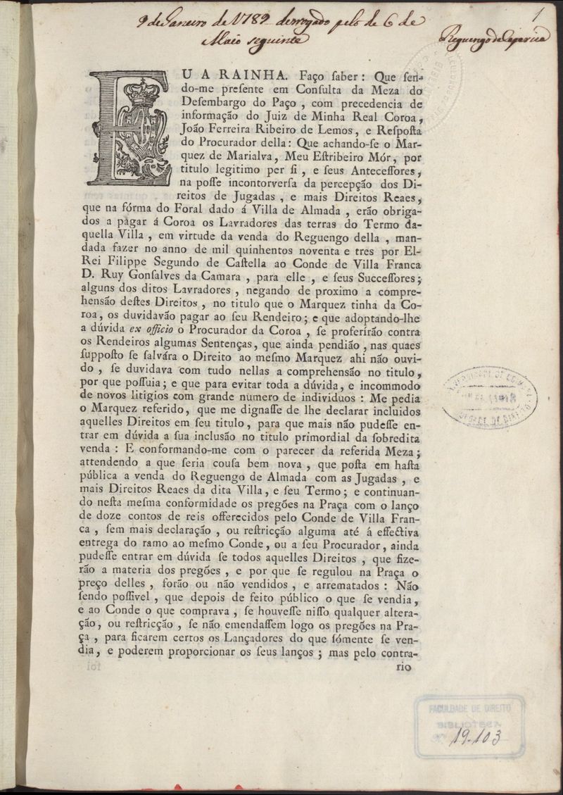José I, Rei de Portugal -- legislação -- 1750-1815