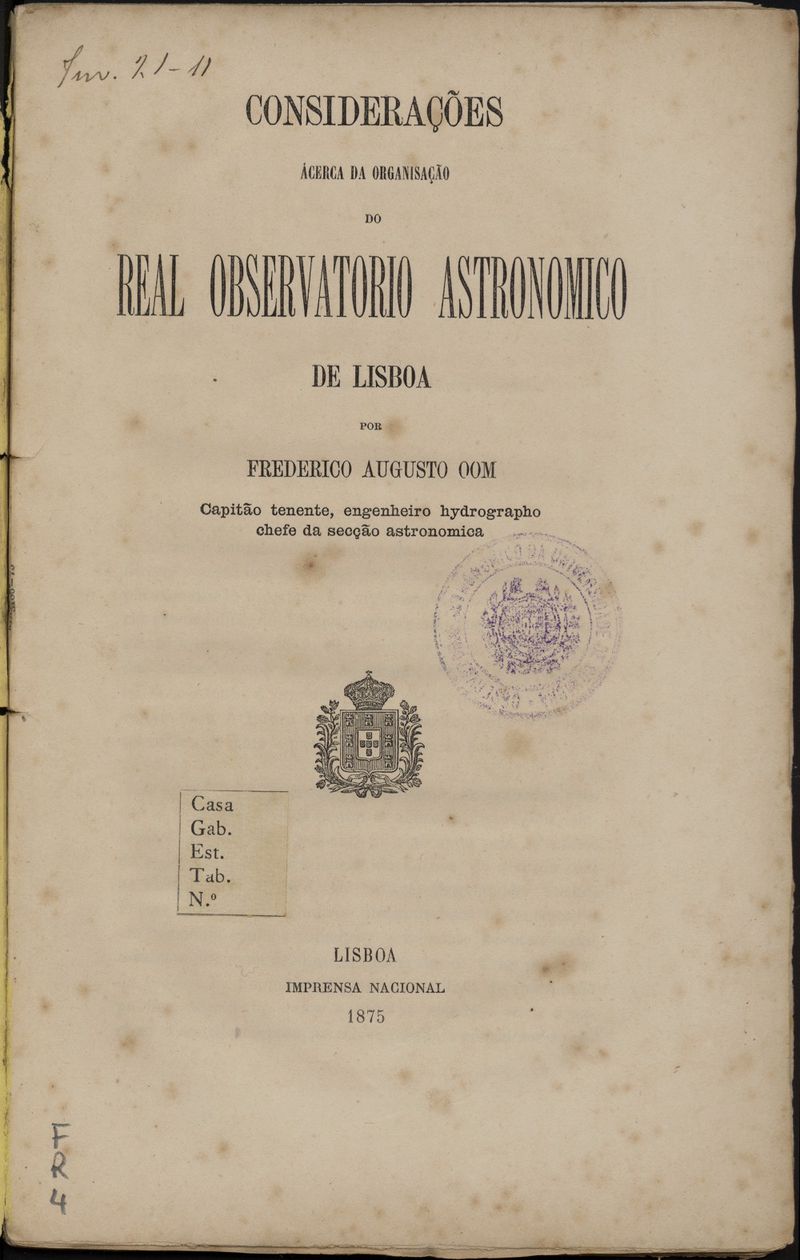 Considerações ácerca da organisação do Real Observatorio Astronomico de Lisboa