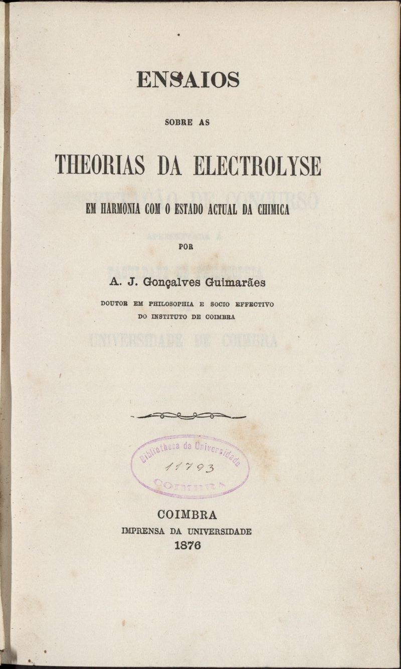 Dissertação de concurso apresentada à Faculdade de Filosofia da Universidade de Coimbra, 1876.