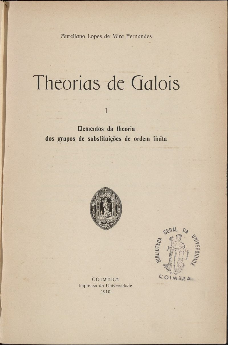 Contém: I : Elementos da teoria dos grupos de substituiçoes de ordem finita.