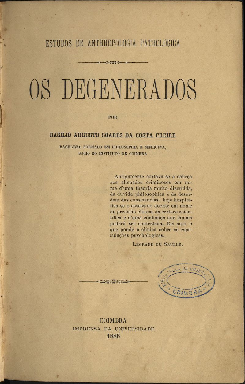 À cabeça da pág. de tít. : Estudos de Anthropologia Pathologica
