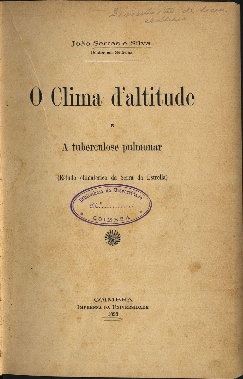 O clima d'altitude e a tuberculose pulmonar : estudo climaterico da Serra da Estrela
