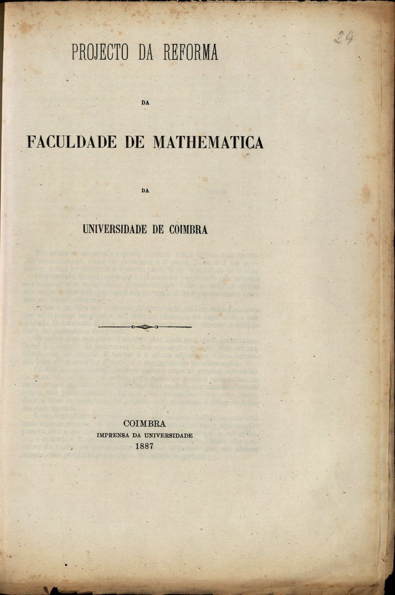 Projecto da reforma da Faculdade de Mathematica da Universidade de Coimbra