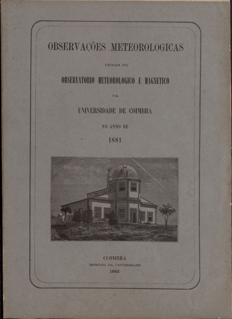 Observações meteorologicas feitas no Observatório Meteorologico e Magnetico da Universidade de Coimbra - 1881