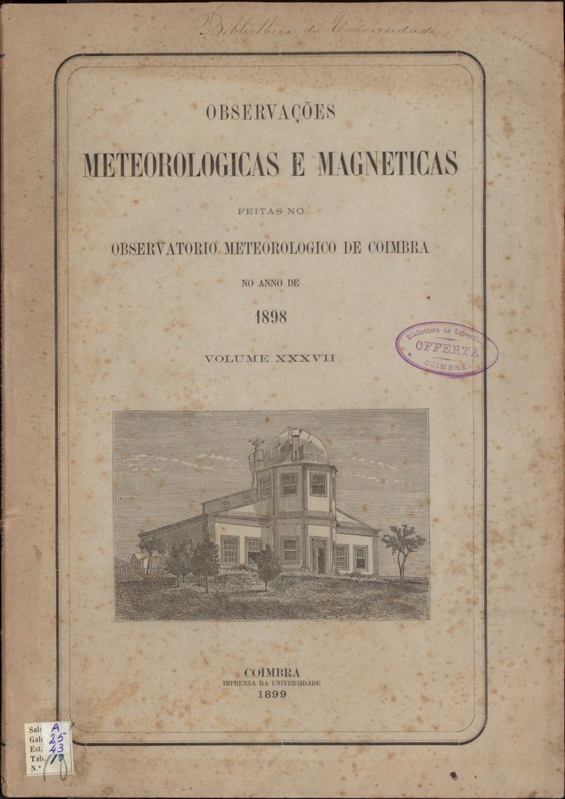 Observações meteorológicas e magnéticas feitas no Observatório Meteorológico e Magnético da Universidade de Coimbra - 1898