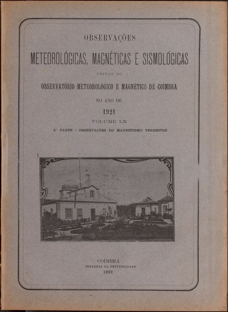 Observações meteorológicas, magnéticas e sismológicas feitas no Observatório Meteorológico e Magnético de Coimbra