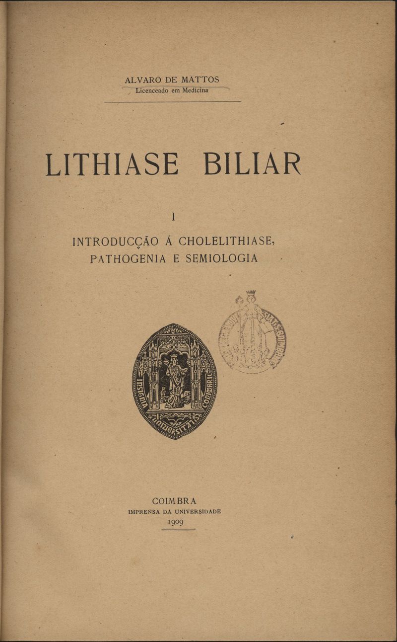 Vol. 1, tit.: Introdução á cholelithiase, pathogenia e semiologia. - Vol. 2, tit.: Complicações e tratamento.