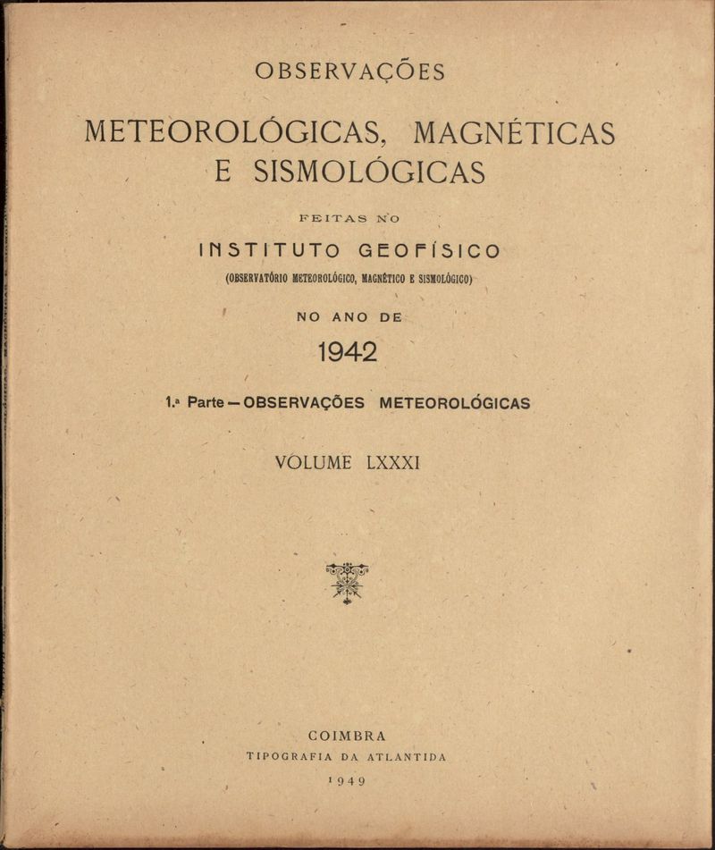 Observações meteorológicas, magnéticas e sismológicas feitas no Observatório Meteorológico e Magnético de Coimbra - 1942-1